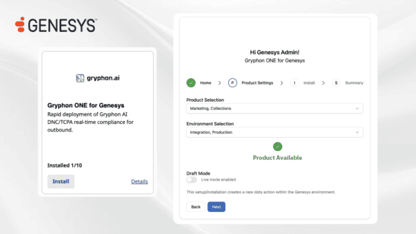 Enterprises often struggle with the “telephony tax”—the heavy IT effort required to embed compliance into outbound workflows. Gryphon ONE for Genesys solves this by providing a rapid configuration layer directly within Genesys Cloud.