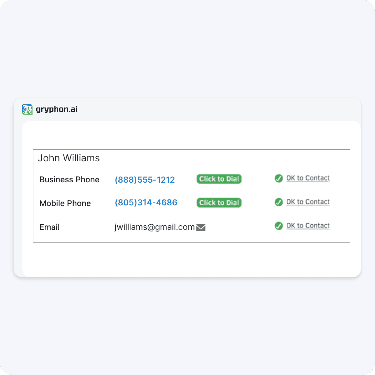 Automate your contact strategy to ensure real-time compliance with the TCPA, federal and state DNC lists, and local regulations. Gryphon ONE enables: